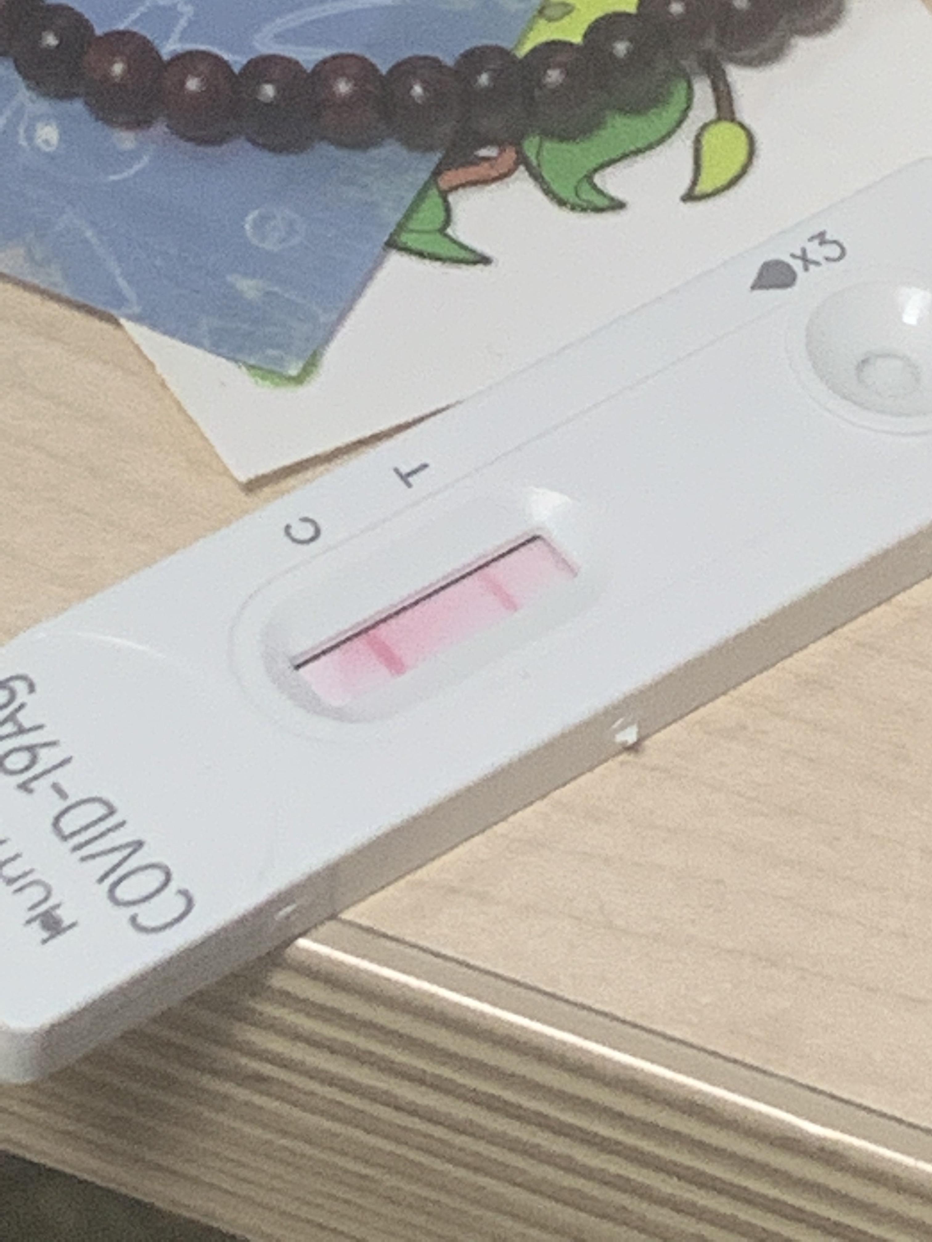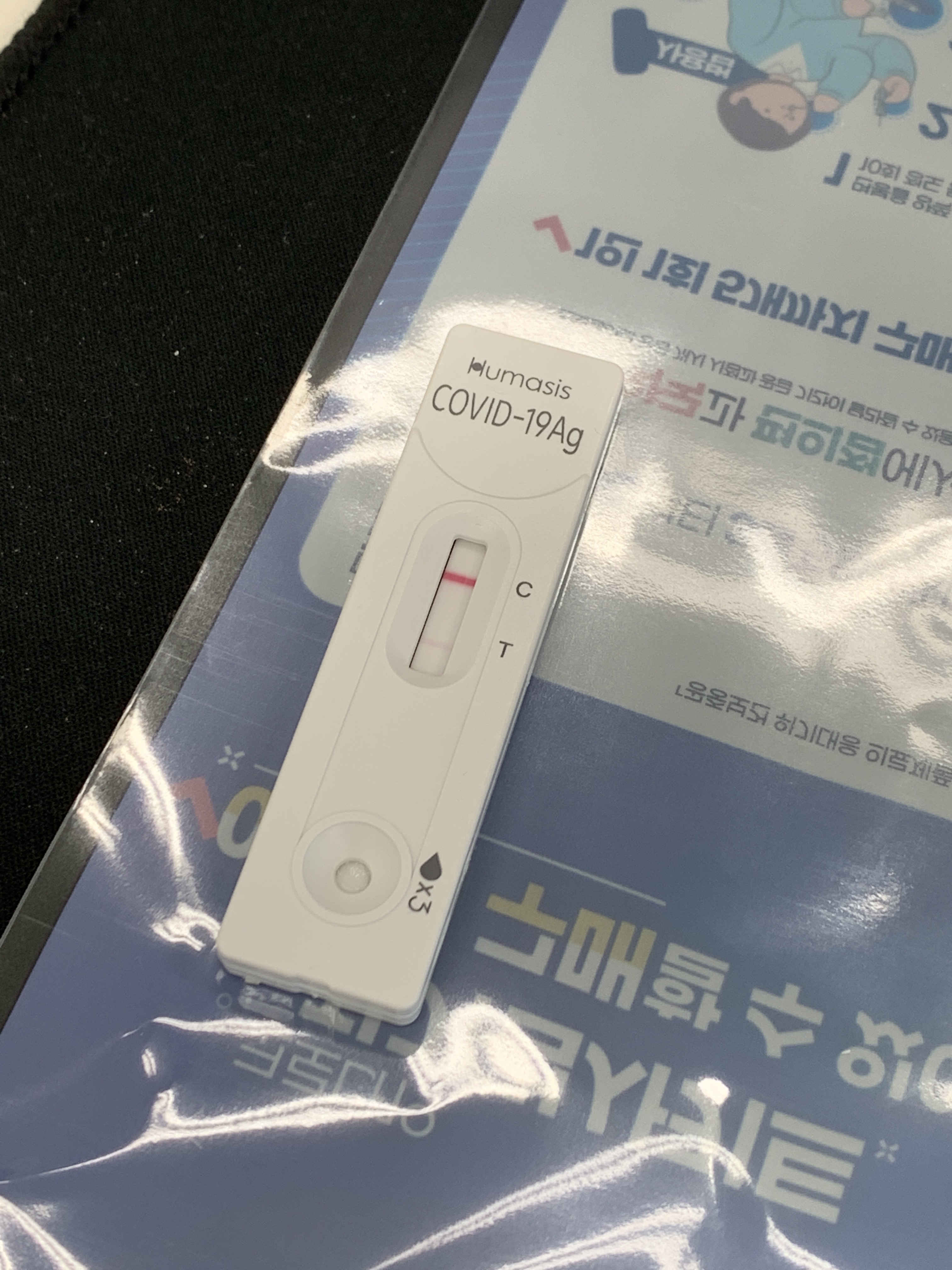 비염 증세가 있어 자가진단 키트로 코에만 검사를 해봤고 희미하게 T 쪽에 빨간선이 떠서